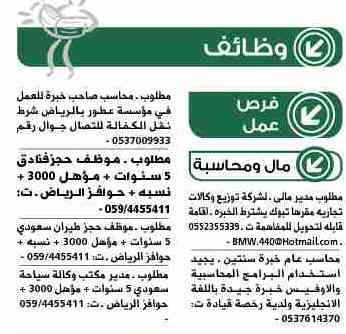وظائف عربية السعودية وظائف جريدة الوسيلة بالرياض يوم السبت 1 6 2013 الجزء الثاني